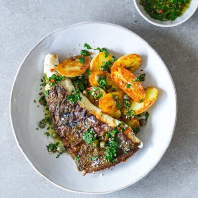 December 8, 2025Crispy skin john dory fillets served with fried potatoes, capers and a punchy chimichurri is a fresh, flavour-packed dish that will have your taste buds tingling. Check out the original recipe here. Ingredients 700g new potatoes, halved 3 tablespoons olive oil 4 x 150g john dory fillets, skin on salt and pepper 1 tablespoon capers […]